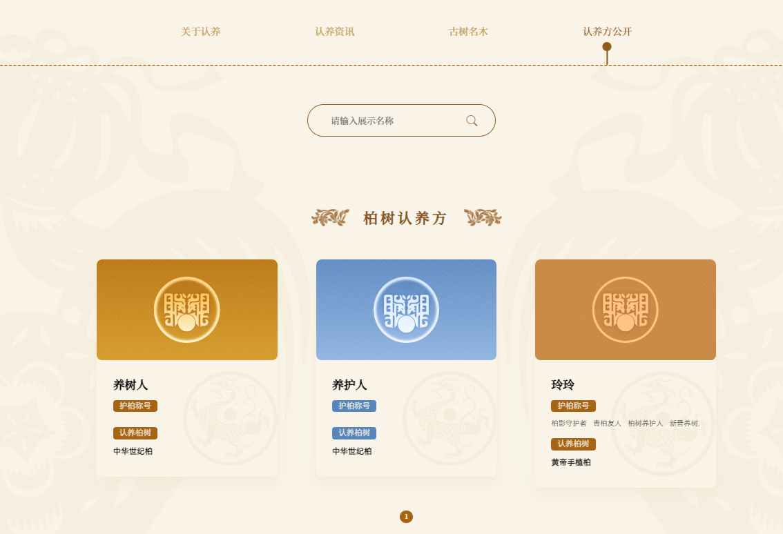 黄帝陵文化数据库设专属页面,展示认养者姓名 / 组织名称及古柏图文,面向全球呈现爱心与担当;