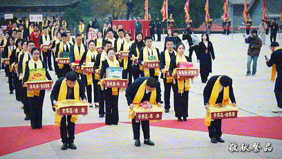 第四项:敬献花篮,列队致意,寄托四海同胞对人文初祖的无限崇敬;