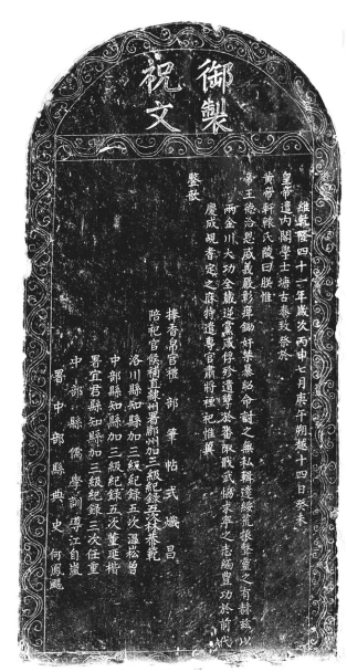 捧香帛官:礼部笔帖式炽昌。陪祀官:候补直隶州署鄜州加三级纪 录五次林恭范,洛川县知县加三级纪录五次温崧曾,中部县知县加三级 纪录五次董延楷,署宣君县知县加三级纪录三次任重,中部县儒学训导 江自岚,署中部县典史何凤飏。