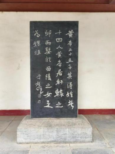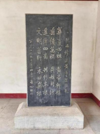 于右任先生是中国近现代著名政治家、教育家、书法家和诗人。1918年清明节,于右任为黄帝陵题写书法作品刻碑立于轩辕庙,内容为:“黄帝二十五子,其得姓者十四人。黄帝居轩辕之邱,而娶于西陵之女,是为嫘祖 。”