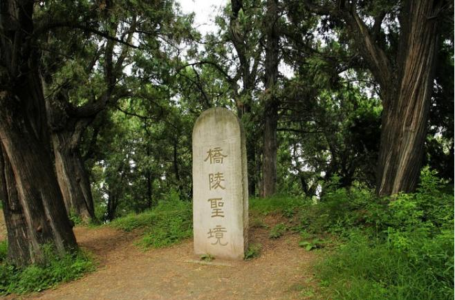 “桥陵圣境”石刻为民国二十三年(1934)修筑黄帝陵山路时所立的石碑。1924年,杨虎城任国民党第17路军总指挥、陕西省政府主席等职。他曾主持修建西安到兰州、咸阳到榆林的公路。1933年春,日寇侵犯,第42师第124旅驻守榆延一带,旅长武士敏拜谒黄帝陵,看到黄帝陵山路崎岖,前行不便,上报杨虎城,奉命带领124旅修复黄帝陵山路,武士敏对黄帝陵神奇的景象感慨万千,题写“桥陵圣境”,并刻碑立于道旁,作为纪念。