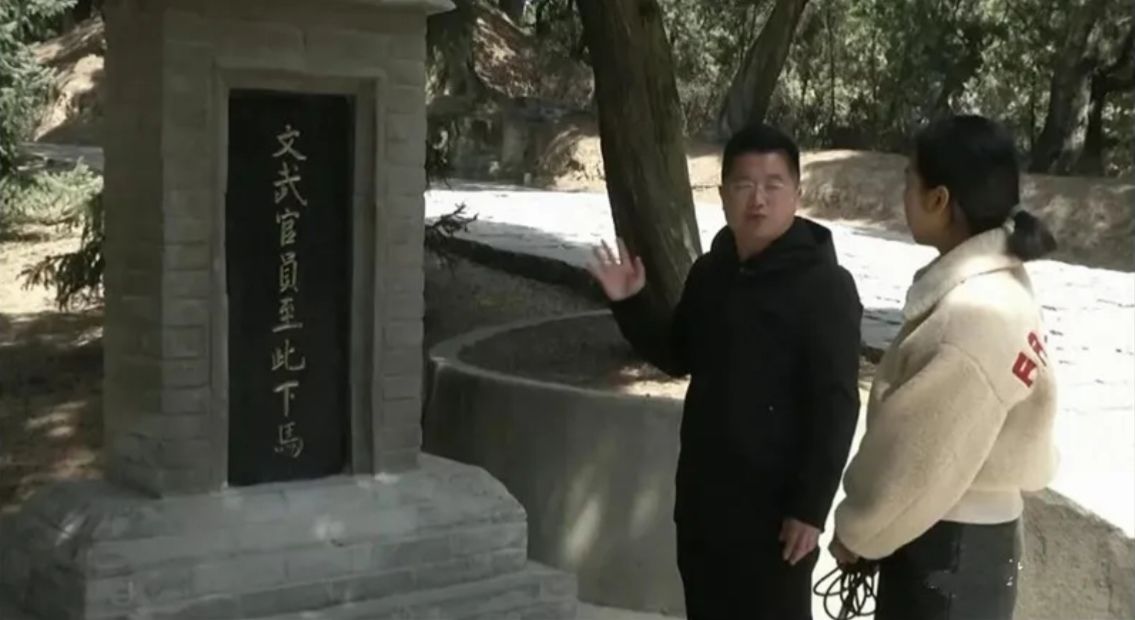 黄帝传说故事非遗传人 苏峰:这块碑叫文武官员至此下马,也叫下马石。历朝历代凡是来祭祀轩辕黄帝的这些官员,他们到这都是要下马下轿下车,然后步行前往陵园拜谒我们的老祖先。也孙铁木儿作为少数民族的皇帝,元朝的皇帝,他这么重视黄帝陵的保护,主要是从政治层面看到黄帝陵作为民族大团结的一面旗帜,它是非常重要的。