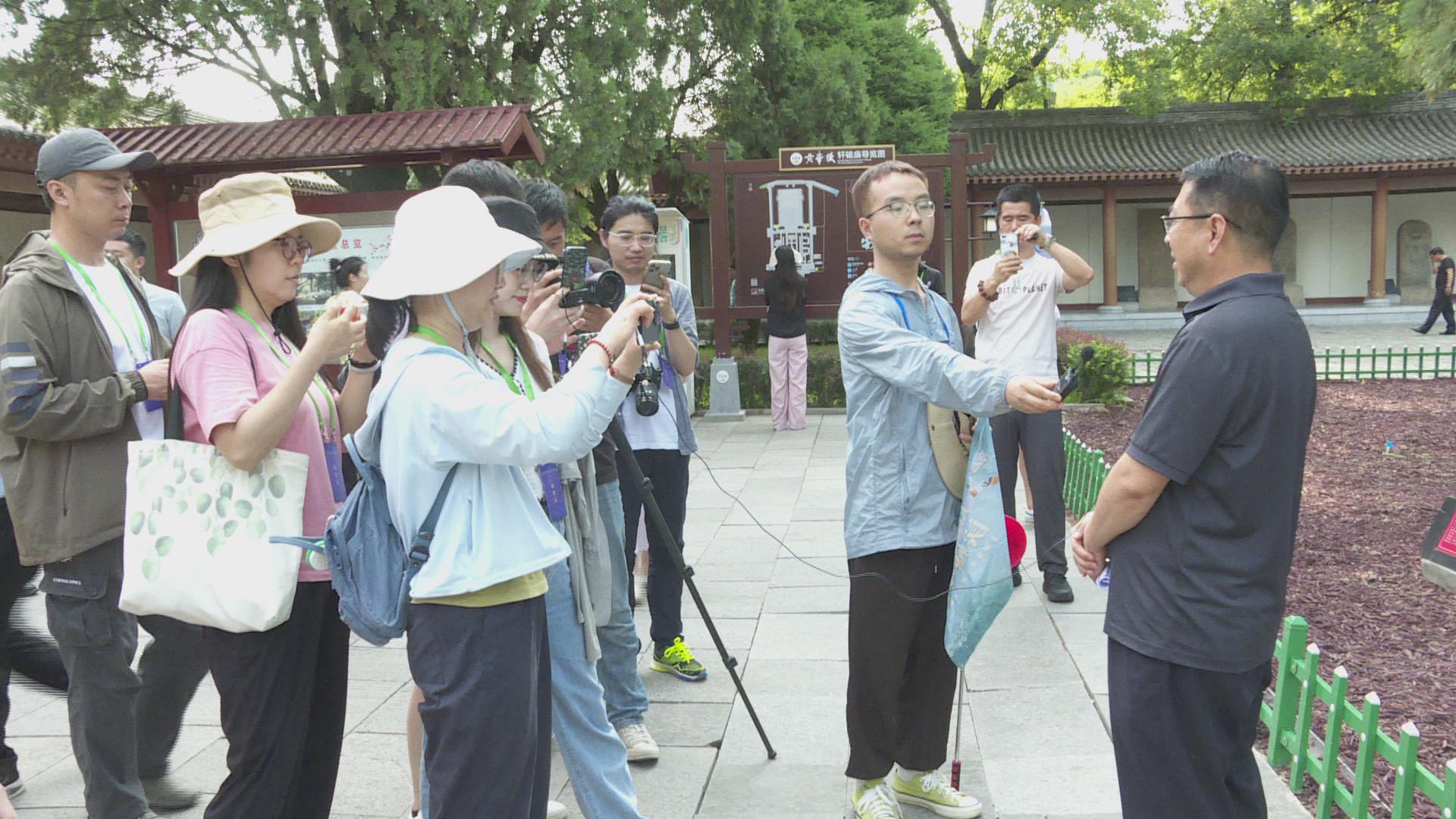 当天下午,采访团成员携带各类摄影、摄像器材来到黄帝陵景区,跟随讲解员的脚步学习黄帝文化,通过镜头与文字讲述黄帝故事。在黄帝手植柏附近,记者们围绕“黄帝手植柏如何保护?”“来黄陵追根溯源有何感受?”等问题进行采访交流。