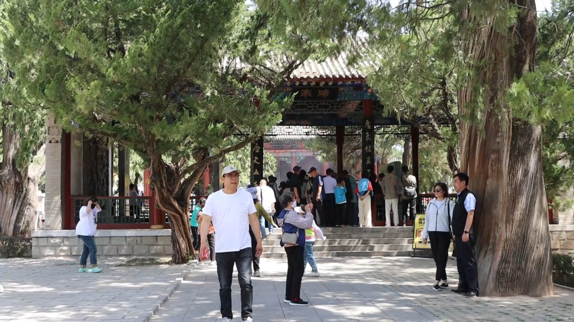 游客梁浩说:“来到这里感觉人文气息浓厚,看到那些柏树就能感受到中国文化的的久远。”