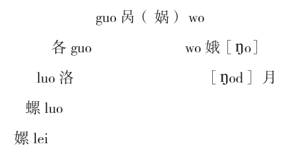 月亮神女娲的“娲”以“锅”为声旁,“锅”是个多音字,可以读guo、wa、wo等 , guo可以转化为luo 和 lei, 比如目前川方言“各”读guo, “洛”读luo, 说明其具 有演变关系,而“嫘”“螺”同声旁,说明两者语音同源,目前一个读luo,一 个 读lei。另 外 ,guo 也可以演变为wo, 而 wo 也可以由“月”的上古音[]od] 演变 而来,由此可见“嫘”与“月”的关联。